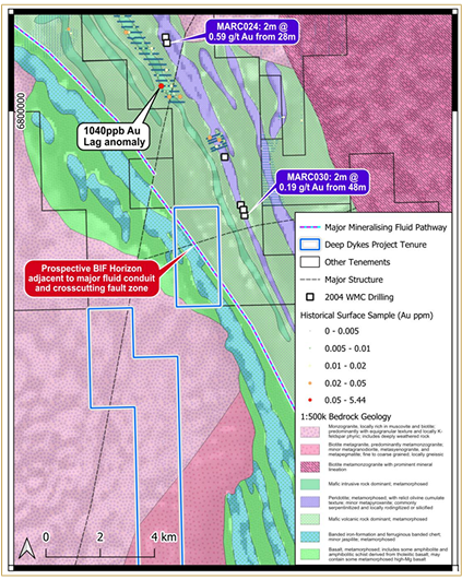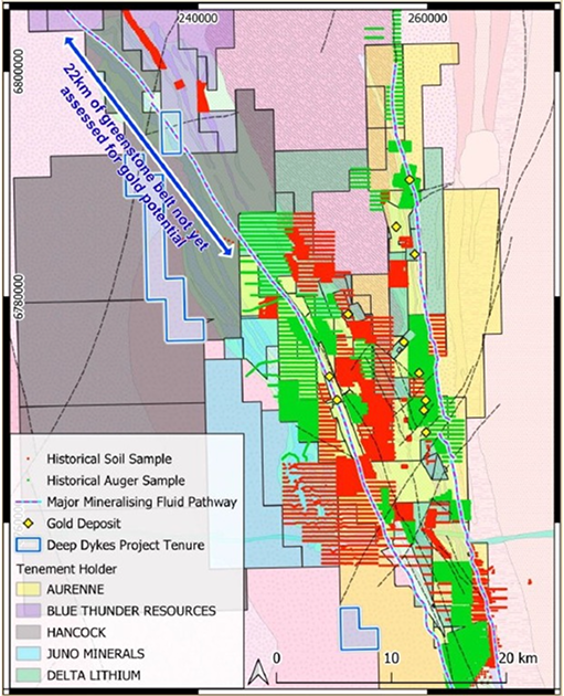 - Regional datasets show no surface sampling across the Deep Dykes tenure