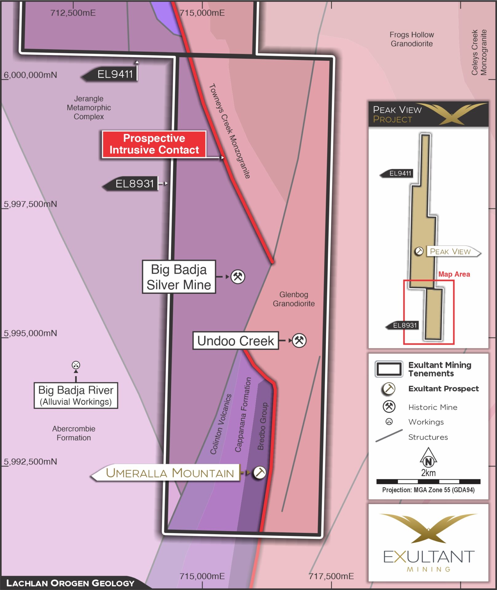 - Fertile contact hosting Big Badja Ag-Pb-Au Mine, Undoo Creek Au and Umeralla Mountain prospects