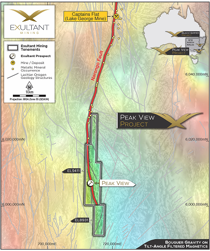 - 30 recorded mineral occurrences between Captains Flat and the Peak View Prospect highlighting the fertility of the Narongo Fault